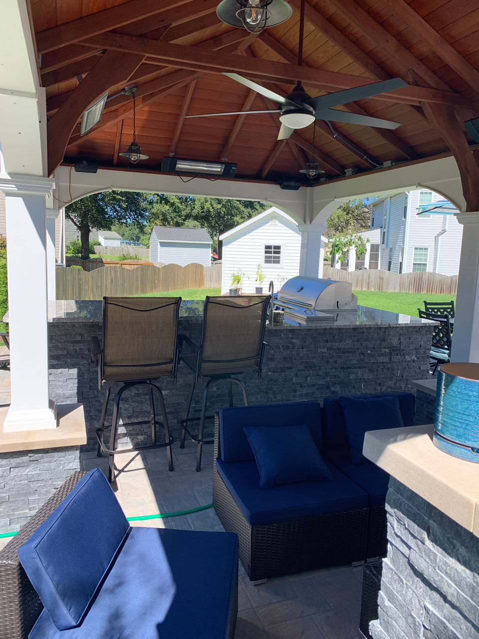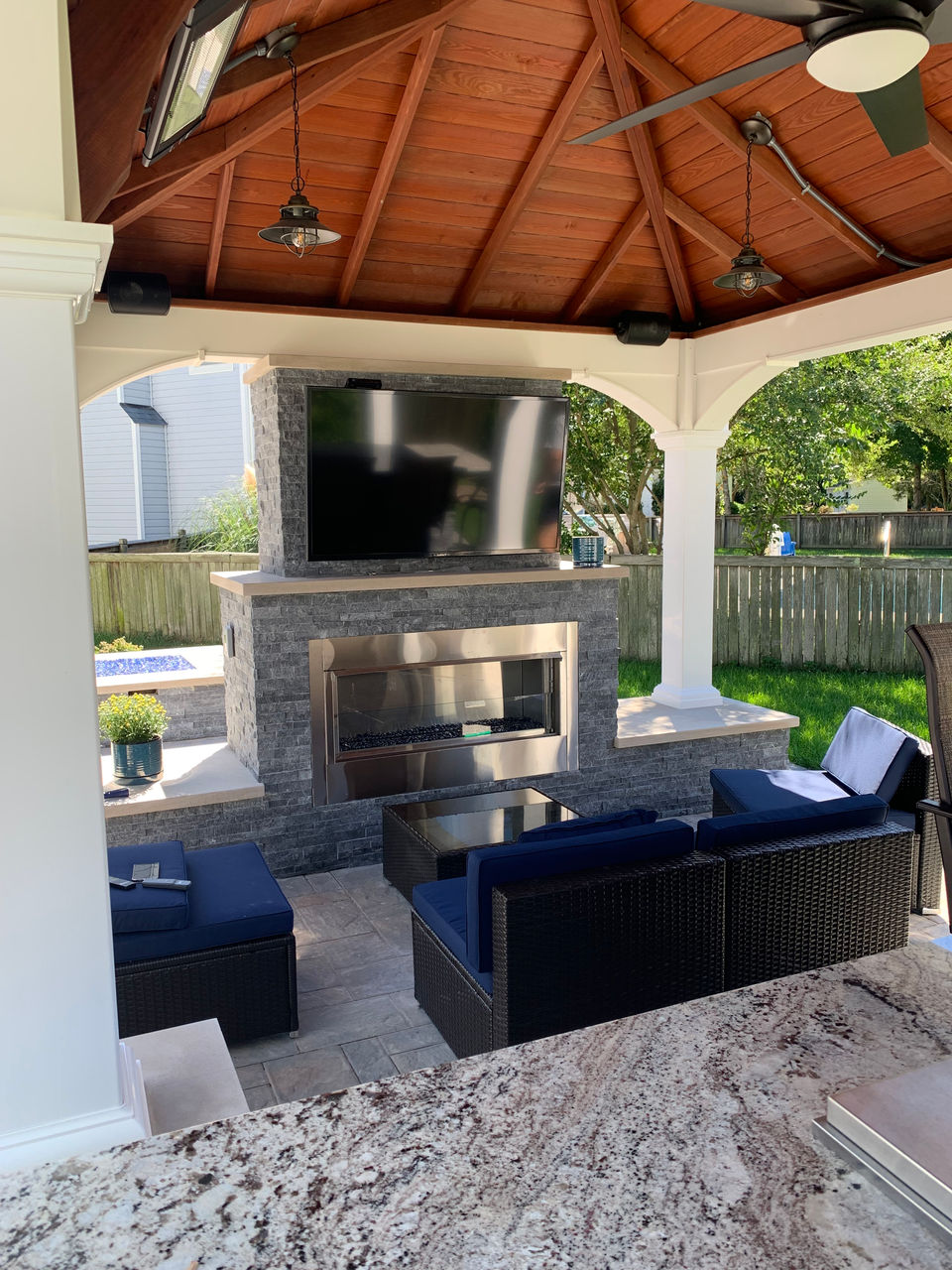 Working from home can be a challenge - especially when everyone else in the house also is present too! Creating a space where one can work and enjoy all the amenities of inside the house was paramount in creating this outdoor home office. The space includes heat, plenty of fans and the latest AV connections for a seamless work day.
